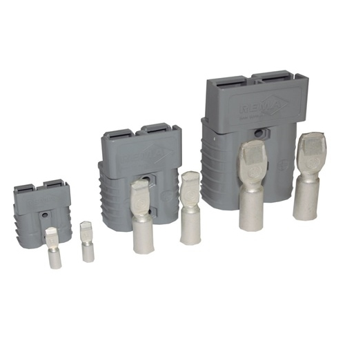 Os conectores SR (bipolares) são fabricados na Alemanha e aprovado pela UL e REACH. Usados principalmente em empilhadeira e outras aplicações de veículos eletrônicos com conexão de bateria. São identificados através de cores, cada cor possui uma tensão de operação específica.