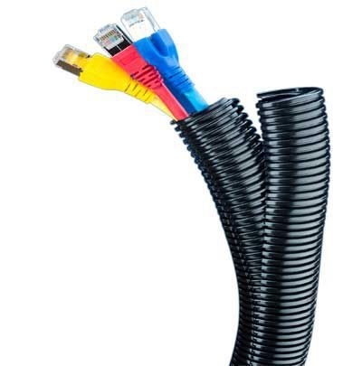 Conduíte de plástico corrugado duplo, secção longitudinal, refechável.