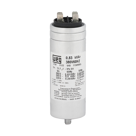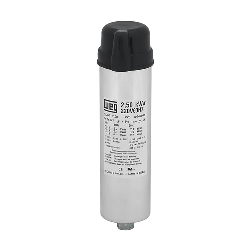Fabricados em conformidade com as normas NBR IEC 60831-1/2, UL 810 e diretiva RoHS, os capacitores para correção do fator de potência WEG são desenvolvidos com filme de polipropileno metalizado autorregenerativo e possuem dispositivo interruptor de segurança contra sobrepressão interna.